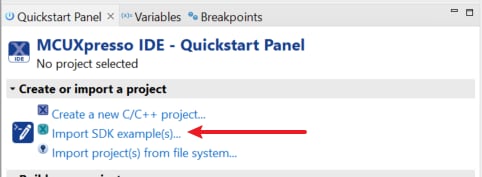 このセクションでは、前提条件として提供されているSDKアーカイブ・ファイルを使用して、Kinetisマイクロコントローラ用のMCUXpresso SDKをインポートします。