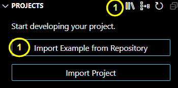 1. 左下隅にある[Quickstart Panel(クイックスタート・パネル)]内の[Import SDK example(s)...(SDKサンプルのインポート)]をクリックします