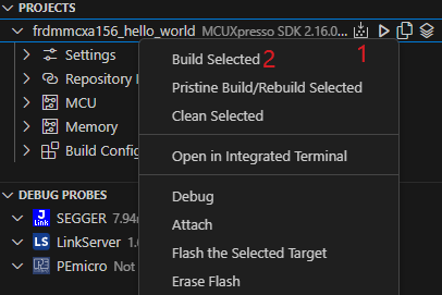 3.1 MCUXpresso IDEを使用したアプリケーションのビルドとフラッシュ
