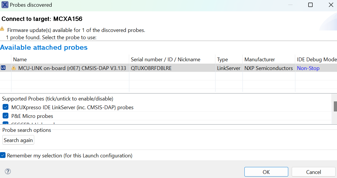 17. MCU-Link CMSIS-DAPデバッグ・プローブを選択します