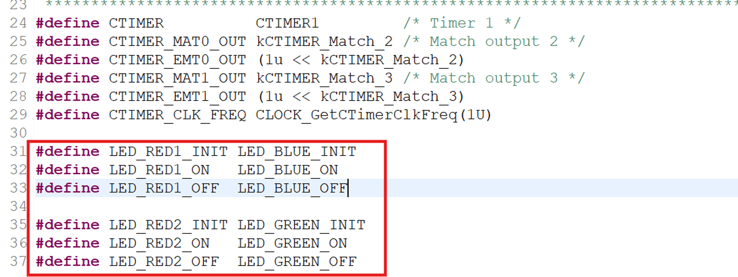 17. CTIMER出力の代わりにLEDを使用できるようにするマクロを追加すると、ボード上の動作を簡単に視覚化できます