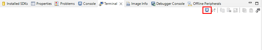 19. シリアル・ターミナルを開いて、アプリケーションの出力を確認できるようにします。[Terminal(ターミナル)]ウィンドウを選択し、[New terminal(新規ターミナル)]アイコンをクリックします