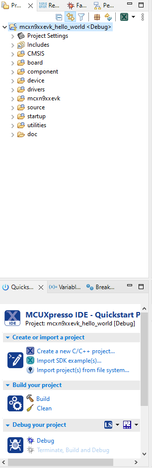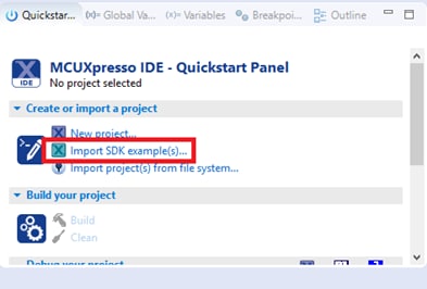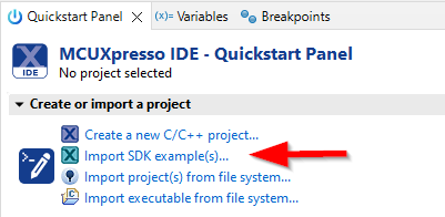 このセクションでは、前提条件として提供されているSDKアーカイブ・ファイルを使用して、MCX Nマイクロコントローラ用のMCUXpresso SDKをインポートします。