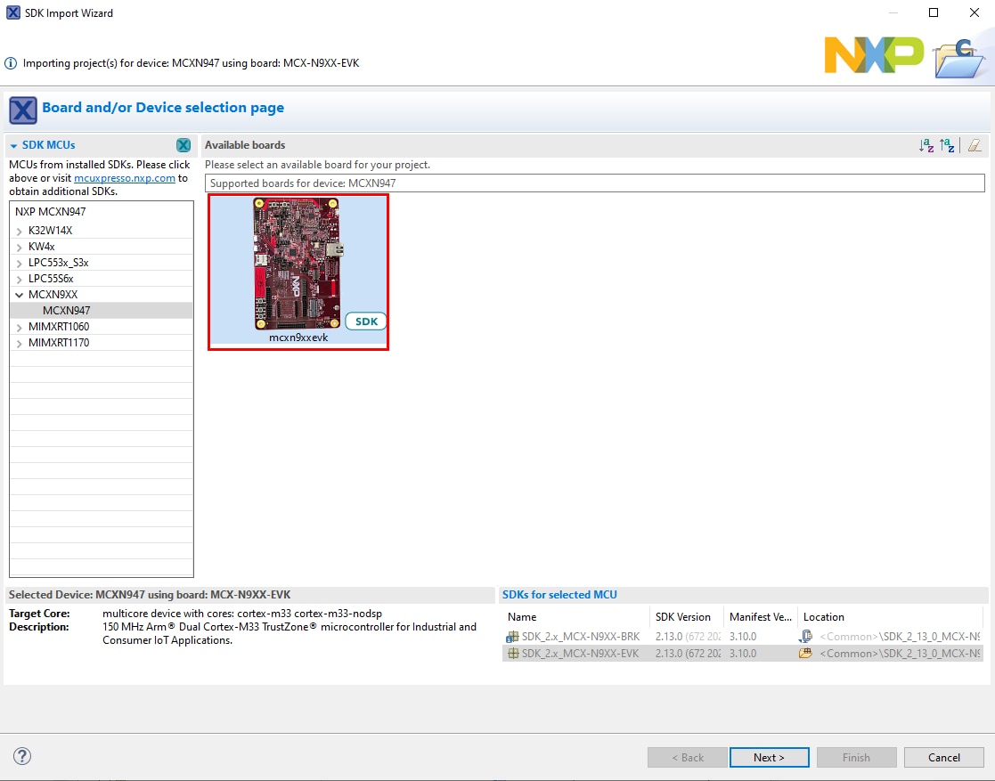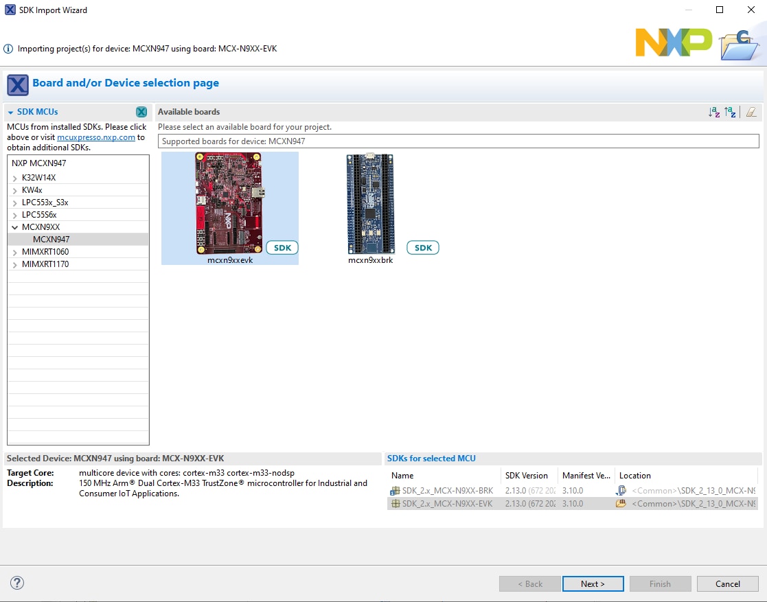 MCX N SDKのインポートは、「ソフトウェアの入手」のセクションで行います。