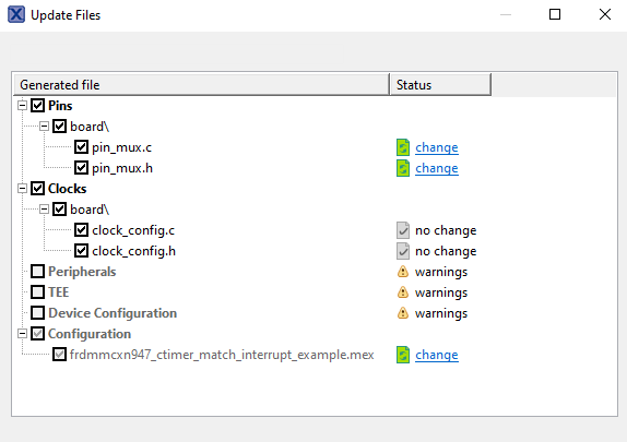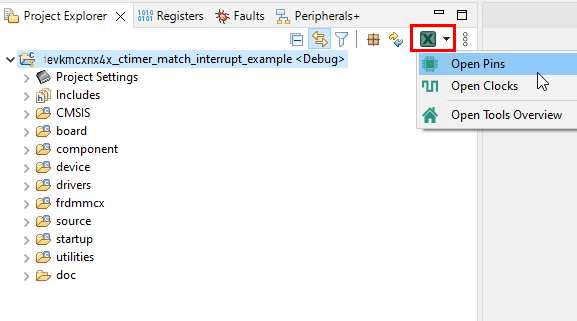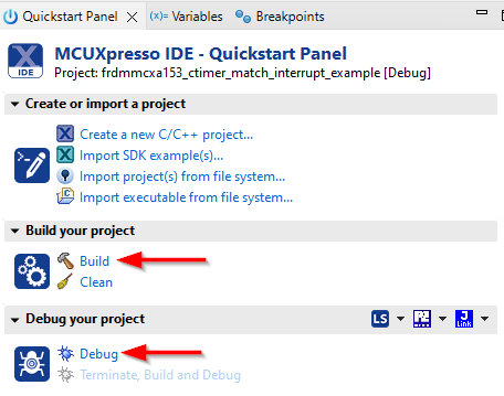 evkmcxnx4x_ctimer_match_interrupt_example」プロジェクトをクリックし、前のセクションに記載されているようにデモをビルド、コンパイル、および実行します