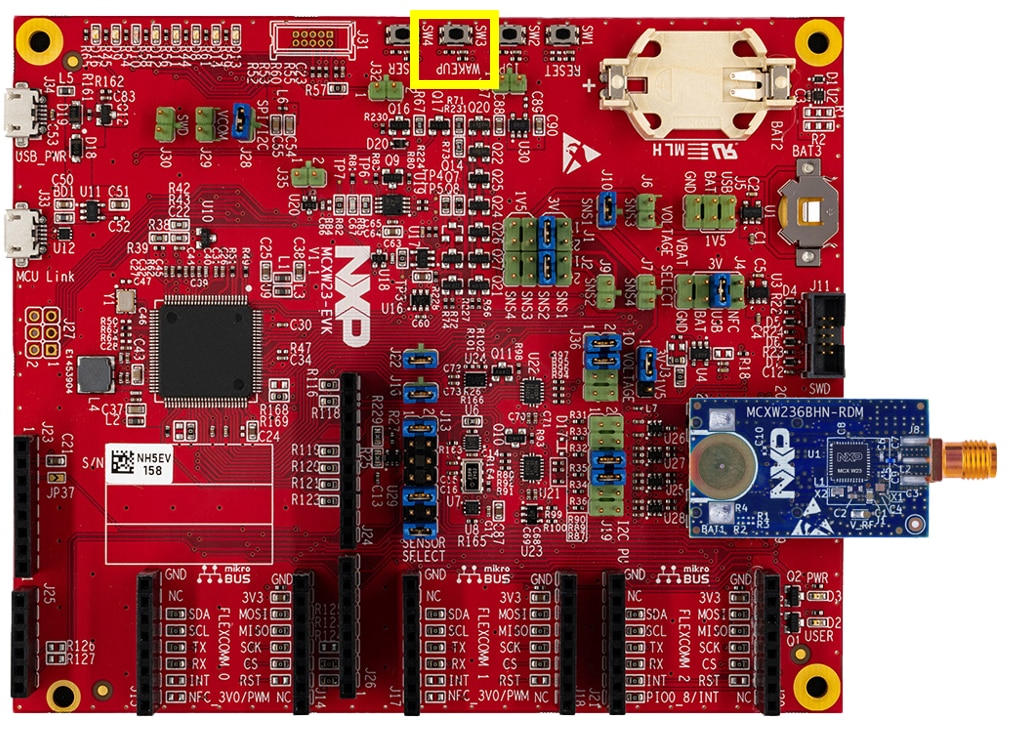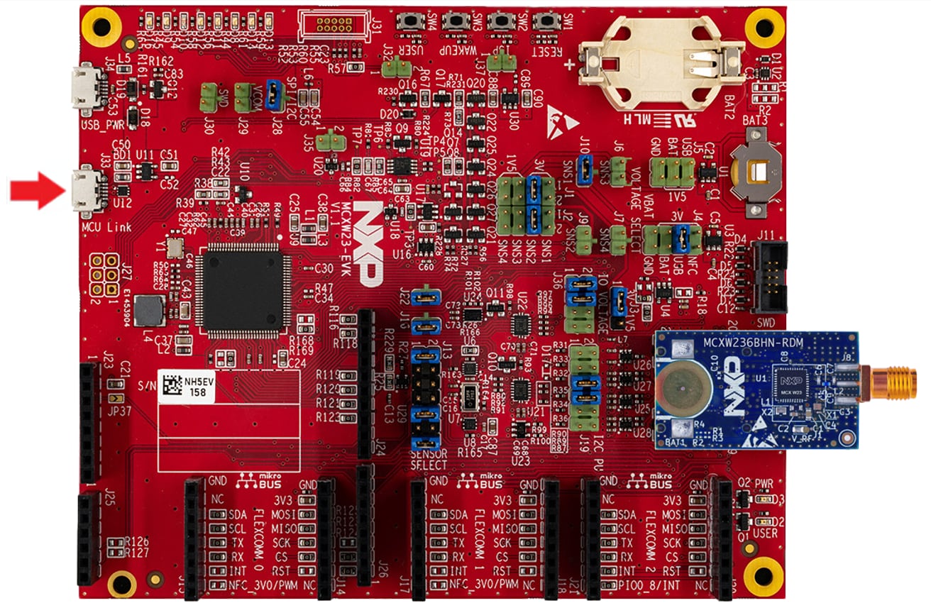 For more information on jumper settings for the MCXW236B-EVK-BB to the MCXW23xByy-RDM or MCXW23xAyy-RDM please refer to the [MCXW23-EVK-BB User Manual]
