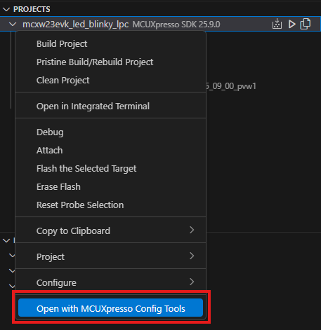 NXP offers a toolchain called MCUXpresso for VS Code. Please download MCUXpresso for VS Code v25.06 or newer.