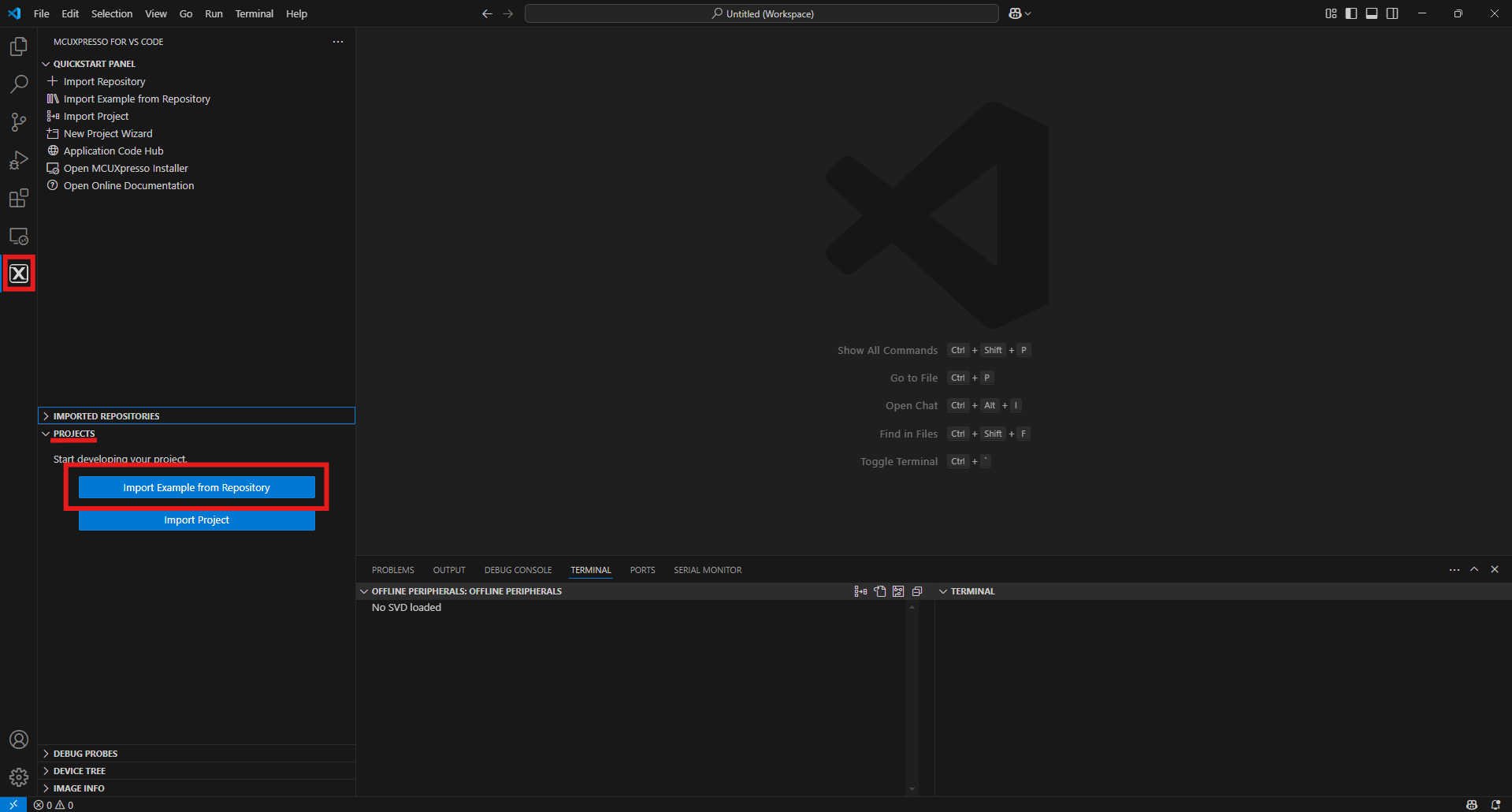 The NXP extension adds tools to help add software repositories into the Visual Studio Code workspace. The software repository can be provided from three sources: