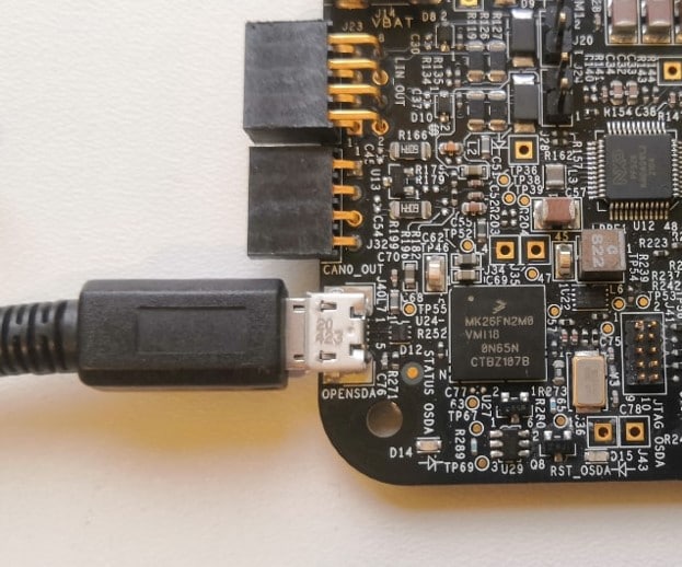 Connect a micro-USB cable to the J40 connector to debug via the on-board S32K3 debugger.