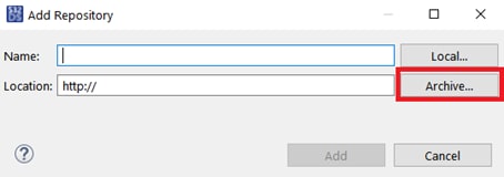 The downloaded archive can be installed by going into the Help → Install New Software… menu in S32DS, selecting Add…, then Archive… and browsing to the archive.