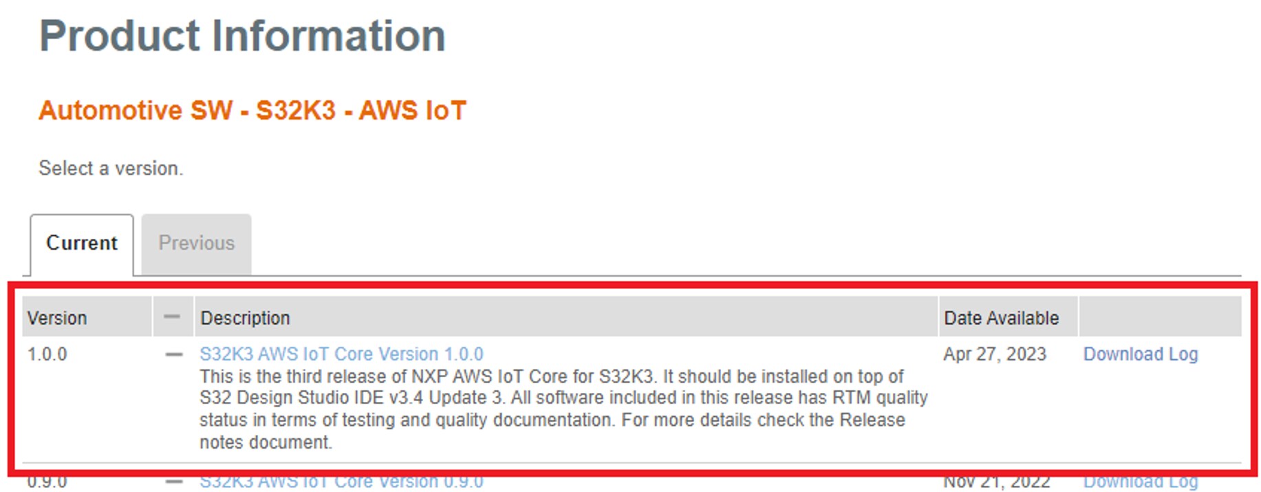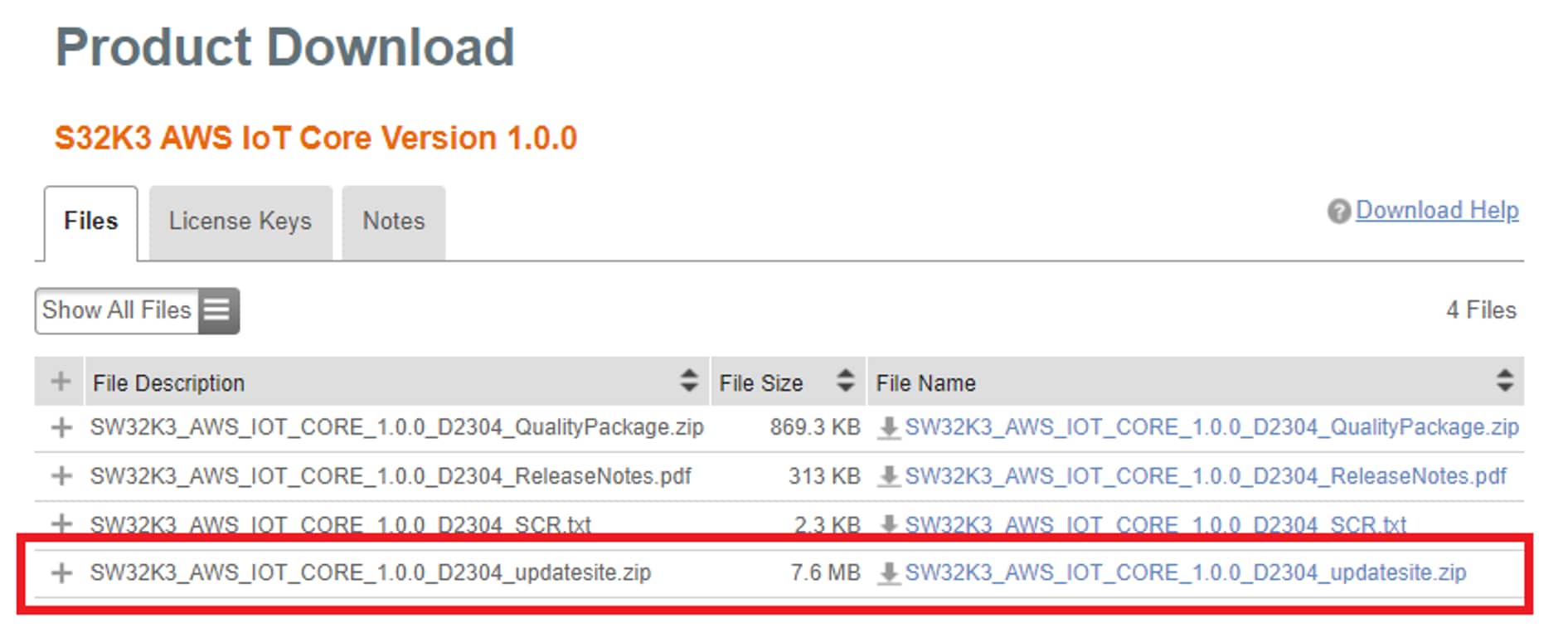 Automotive SW - S32K3 Reference Software → Automotive SW - S32K3 - AWS IoT → S32K3 AWS IoT Core Version 1.0.0 → SW32K3_AWS_IOT_CORE_1.0.0_D2304_updatesite.zip.