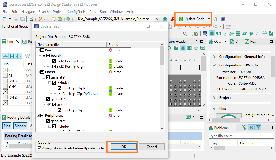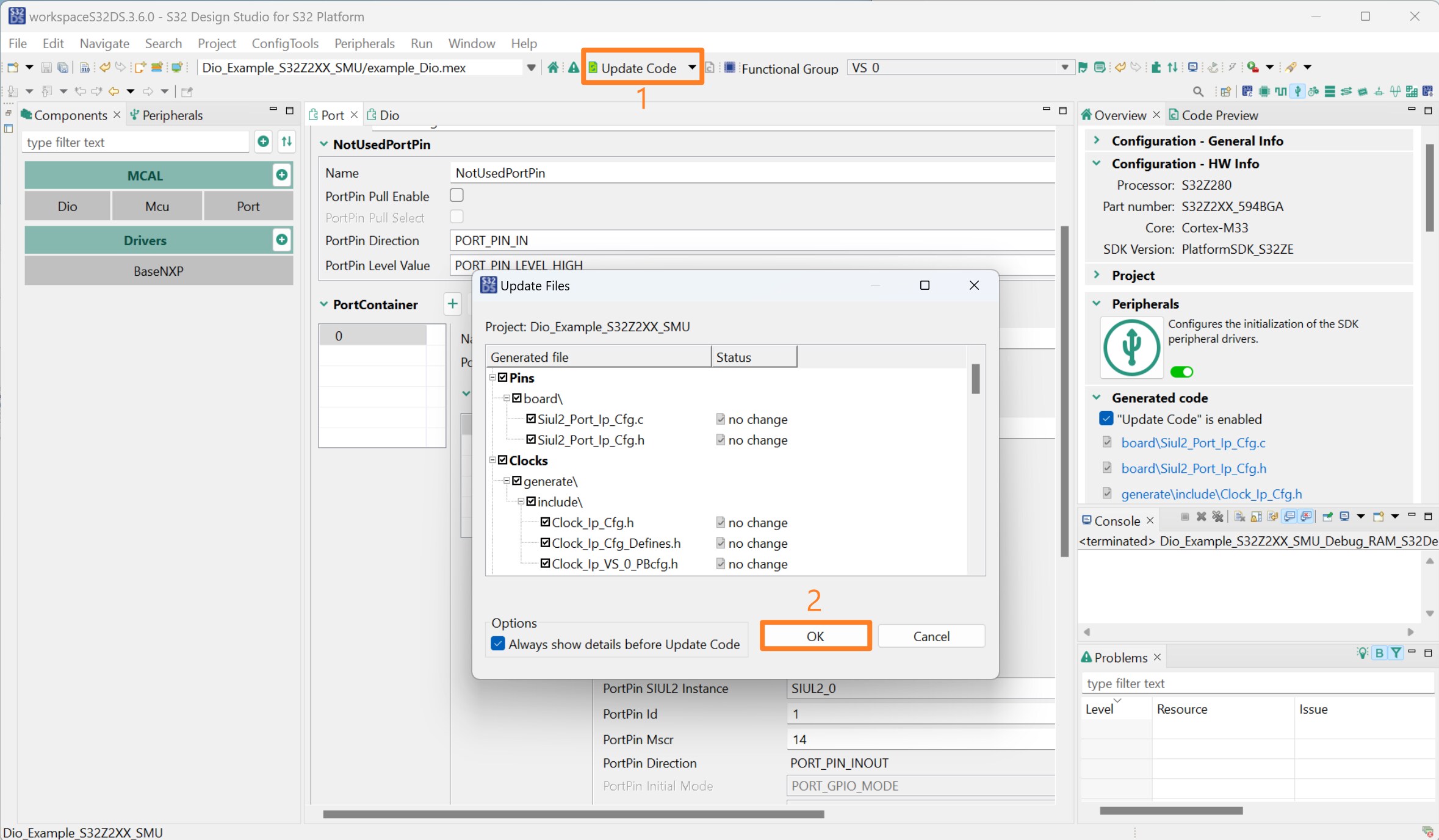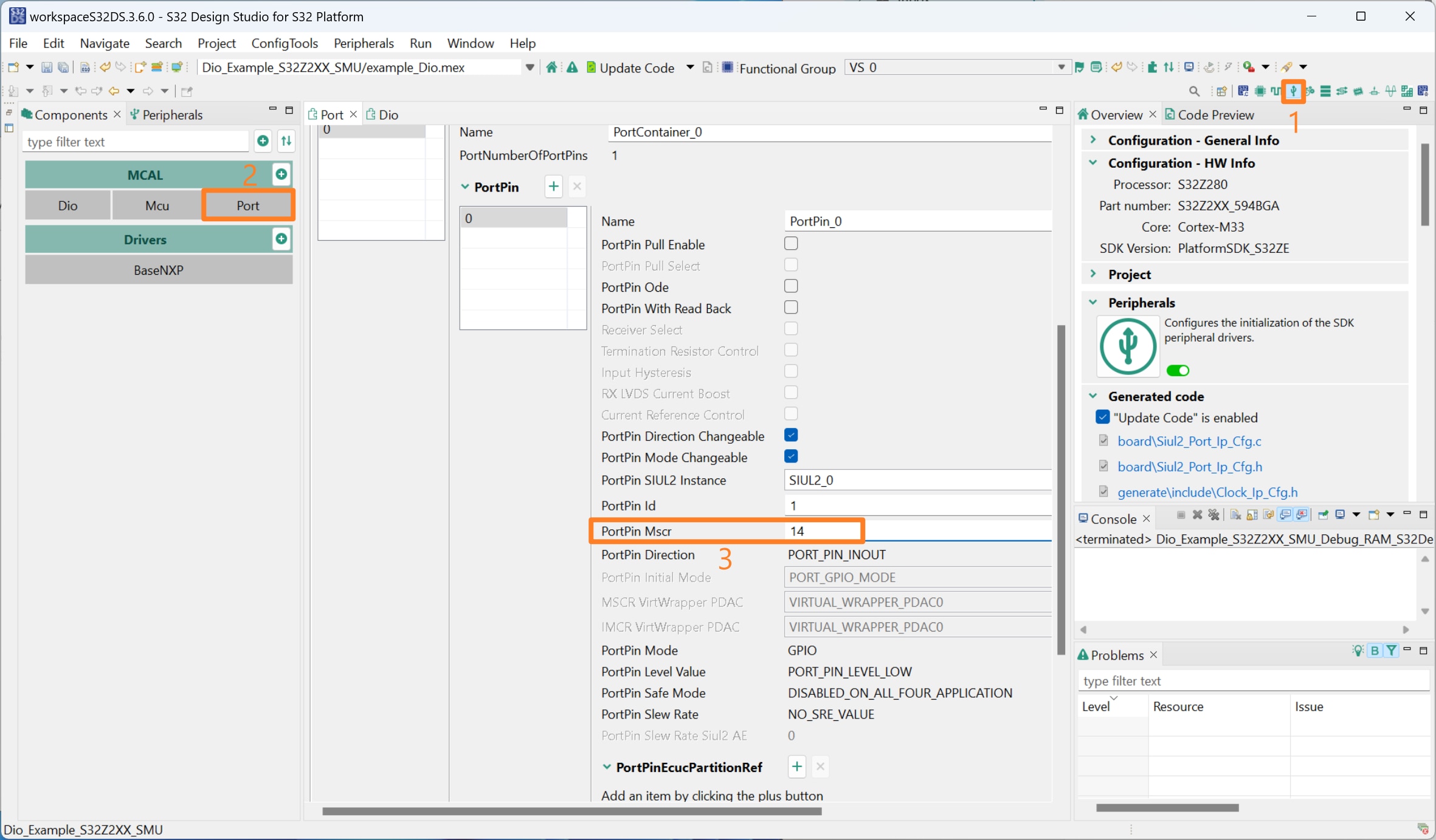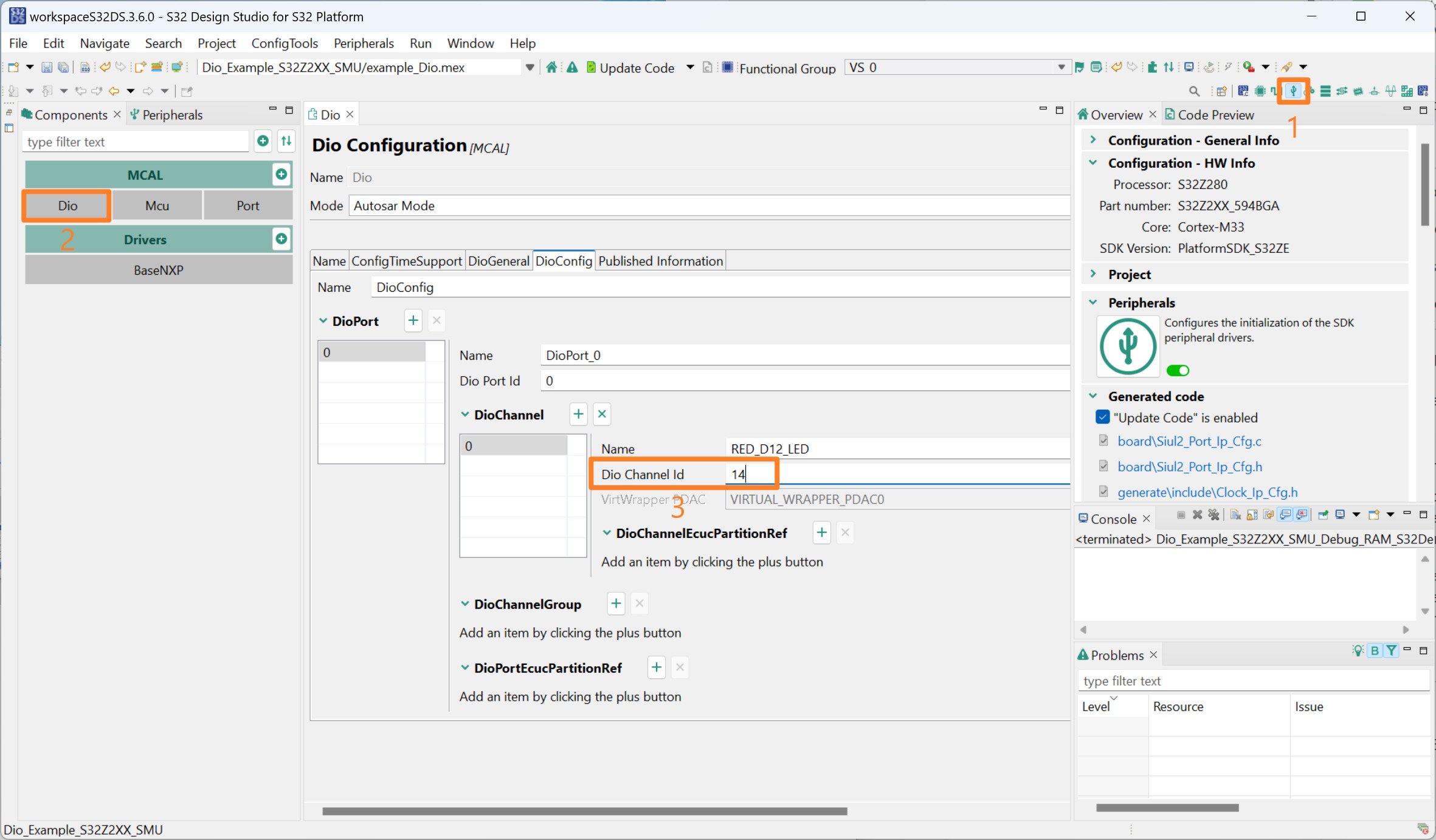 4. [Dio Examples(Dioサンプル)]から[Dio_Example_S32Z2XX_SMU]を選択します