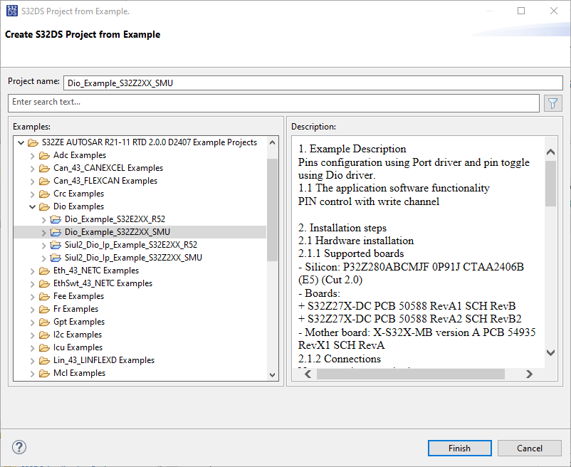 [Dio_Example_S32Z2XX_SMU]を選択します