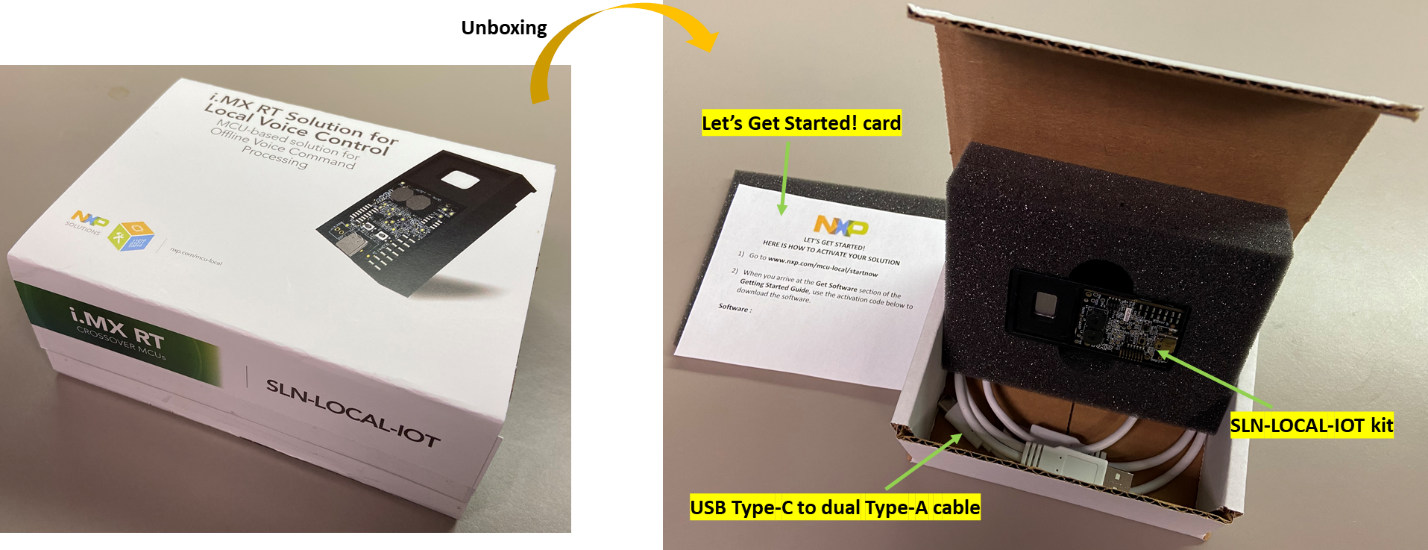 The SLN-LOCAL-IOT kit arrives in a box as shown below. Inside the box, in addition to the kit, you will find a Quick Start Card.