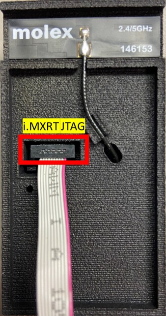 Make sure the 10-pin J-Link connector is connected to the i.MXRT JTAG connector that is located on the backside of SLN-LOCAL-IOT kit, as shown in Figure 23.