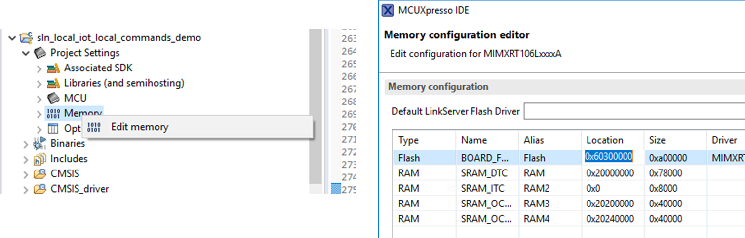 To change the address from Bank A to Bank B, in the MCUXpresso IDE project explorer, right click on the