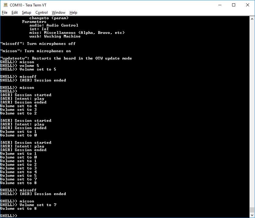 Use micsoff on the serial terminal to mute the microphone as shown in Figure 13. To unmute, use micson.