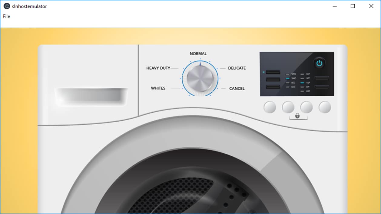 The downloaded SW package in section 2.3 contains a Graphical User Interface (GUI) emulator for a washing machine. This emulator is intended to present the washing machine control demo. When the SLN-LOCAL-IOT kit detects a command, the emulator shows on screen which command was detected. Please note that the GUI is only available for Microsoft Windows.