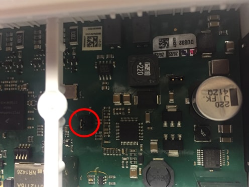 下の図に示すデバッグ・ジャンパを短絡させます。これにより、Miriac™-EK5744がウォッチドッグ・リクエストを無視するようになります。