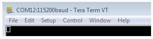 5. 事前に確認したCOMポート番号を使用して、シリアル・ポートをボーレート115200、8データ・ビット、パリティなし、1ストップ・ビットに設定します。この設定は[Setup(セットアップ)]>[Serial Port(シリアル・ポート)]から行うことができます。