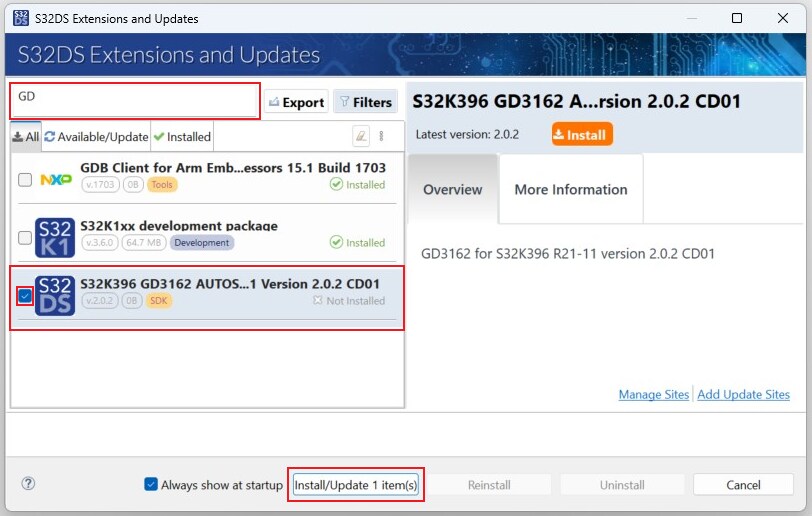 Automotive SW - S32K3/S32M27x - Real-Time Drivers for Cortex-MパッケージからS32K396 GD3162 R21-11 Version 2.0.2 CD01ドライバをダウンロードします。