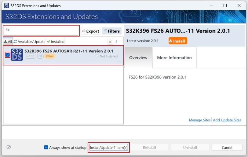 S32K39X Real-Time Drivers ASR R21-11 Version 5.0.0を検索して選択し、インストールします。