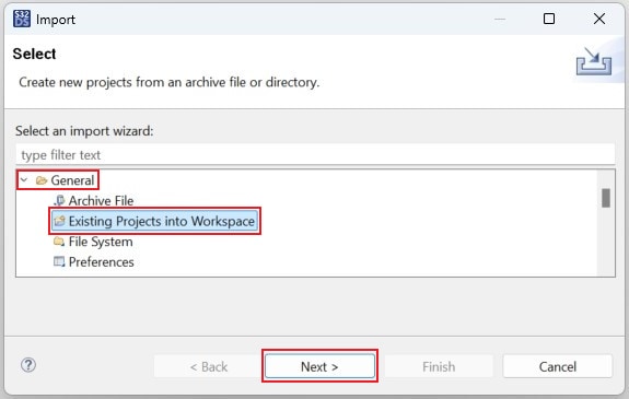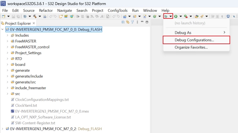 NXP\MC_DevKits\EV-INVERTERGEN3 インストールされているアプリケーション・ソフトウェア・プロジェクトをS32 Design Studio IDE for S32 Platformにインポートするには、次の手順に従います。