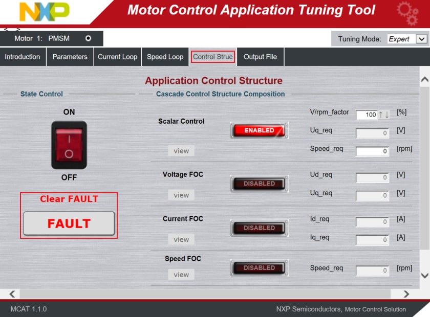 MCATを使用したモータ制御アプリケーション・チューニングの詳細については、「AN4642:三相PMSM向けモーター制御アプリケーション・チューニング (MCAT) ツール」を参照してください。