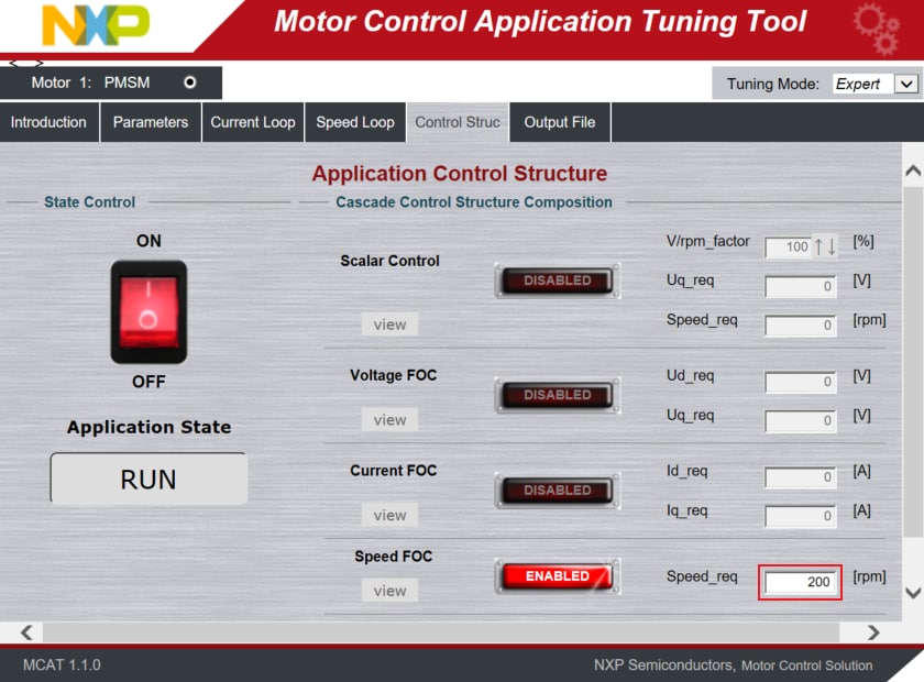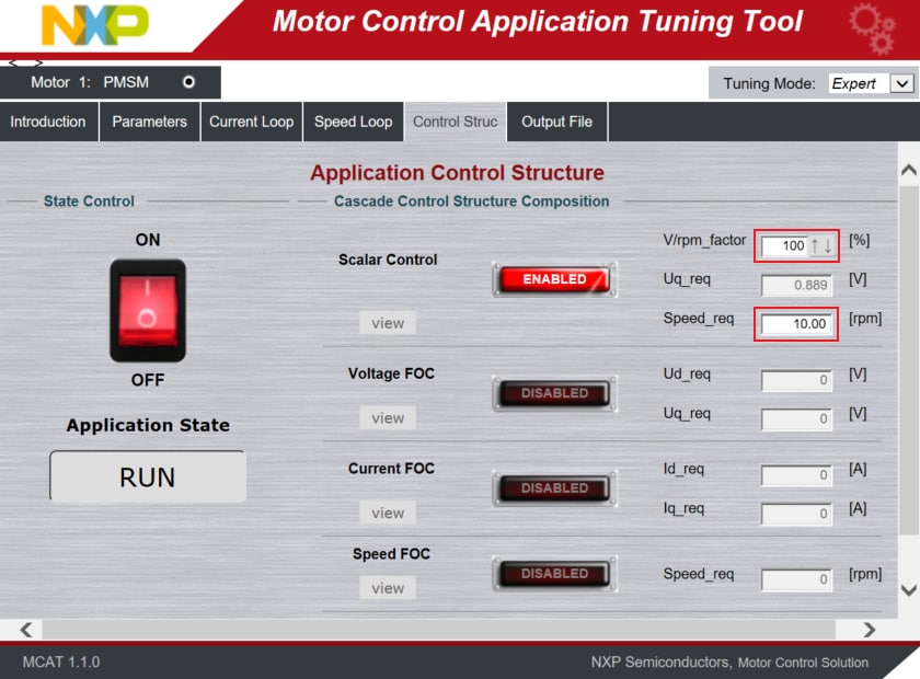 モーターのパラメータは実行時に更新できないため、手順4.3を繰り返してプロジェクトをビルドし、コードをMCUにアップロードします。