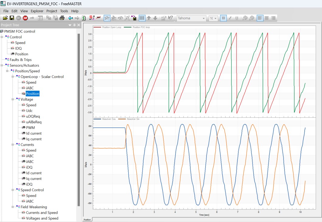 Sensors/Actuators(センサ/アクチュエータ)]→[Position/Speed(位置/速度)]→[オープンループ - スカラー制御(OpenLoop - Scalar Control)の順に選択して、[位置(Position)]ビューを選択します