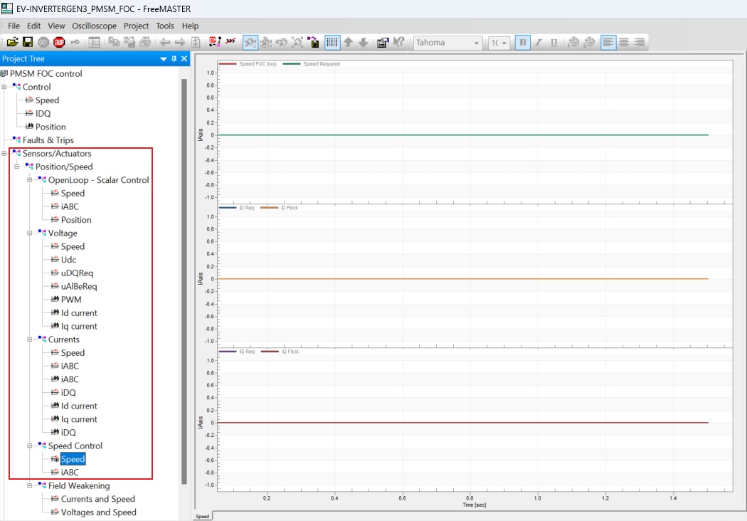 Sensors/Actuators(センサ/アクチュエータ)]→[Position/Speed(位置/速度)]→[Speed Control(回転数制御)]の順に選択して、[Speed(回転数)]ビューを選択します