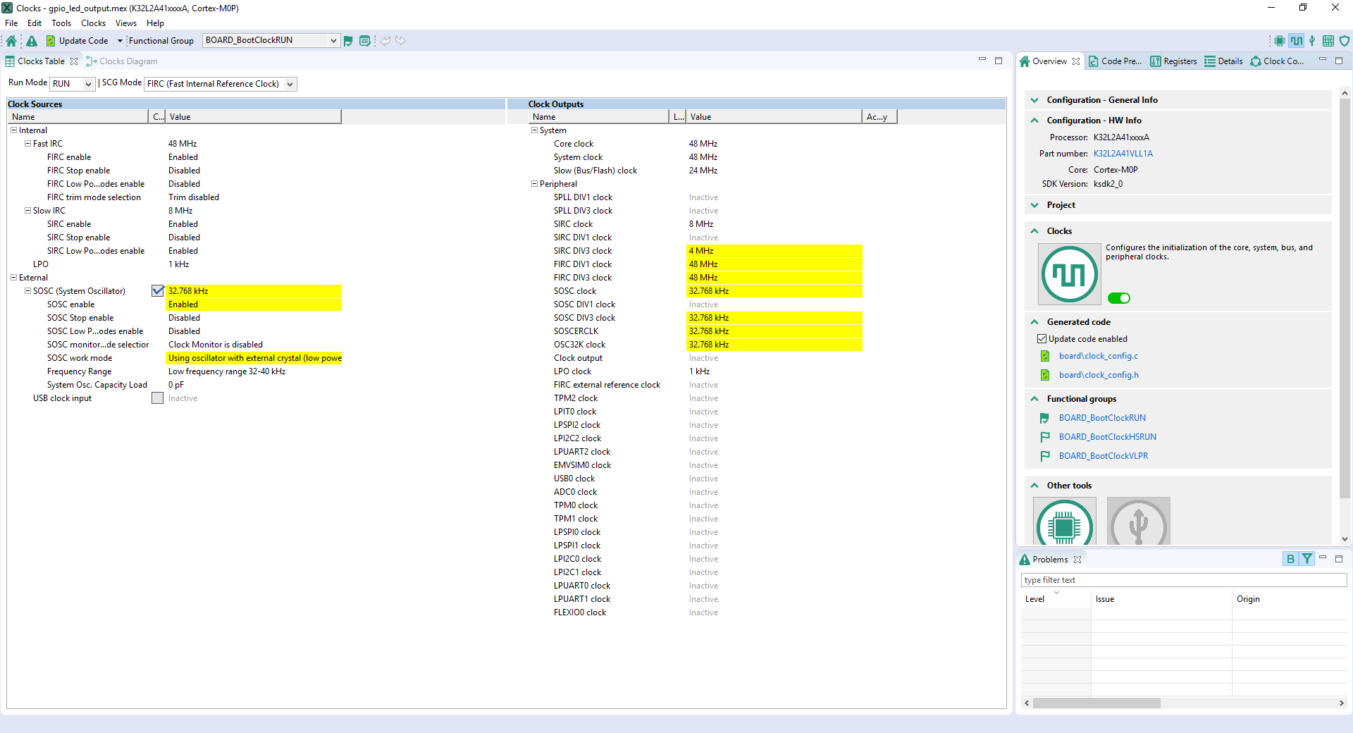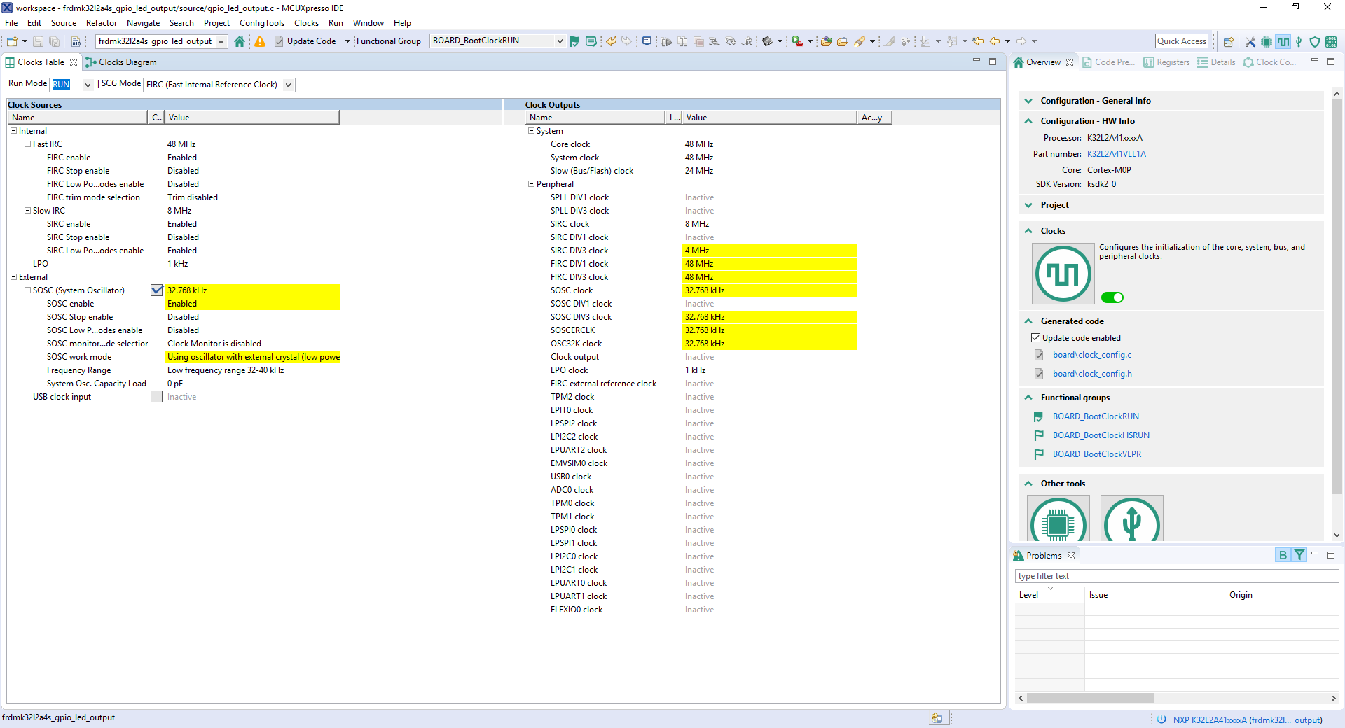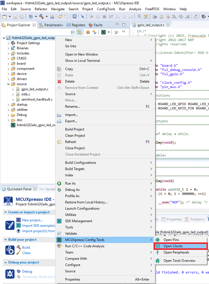 Next use the Clocks tool that is part of the MCUXpresso Config Tool to change the clock settings and change the rate that the LED blinks.