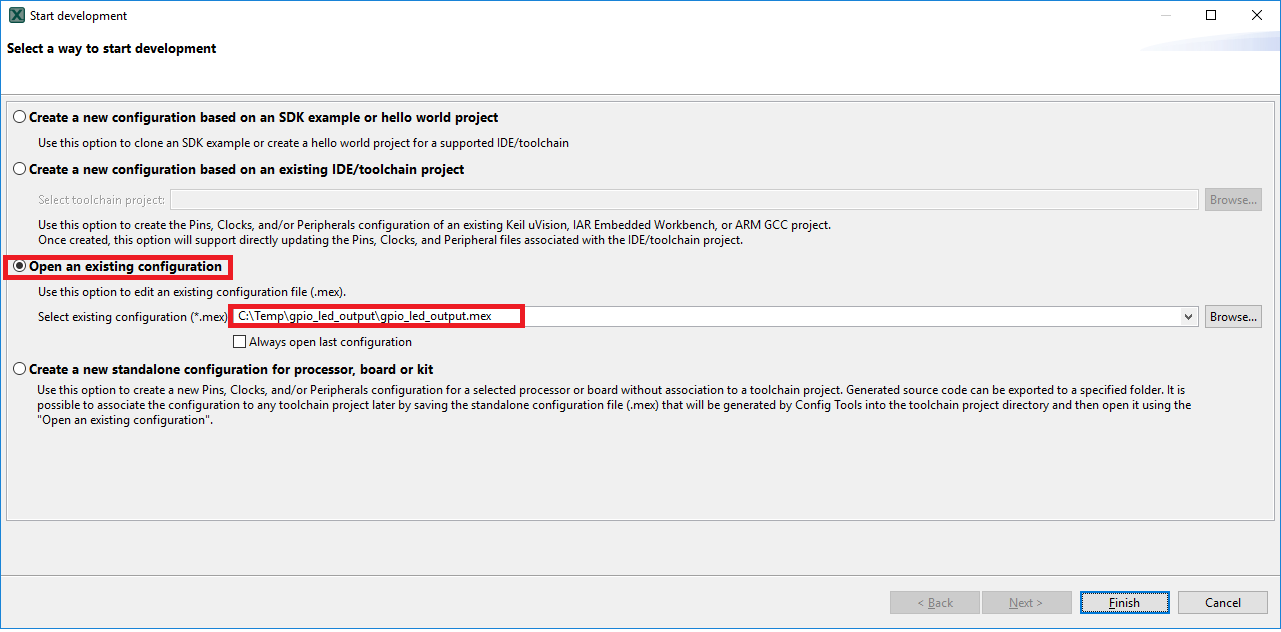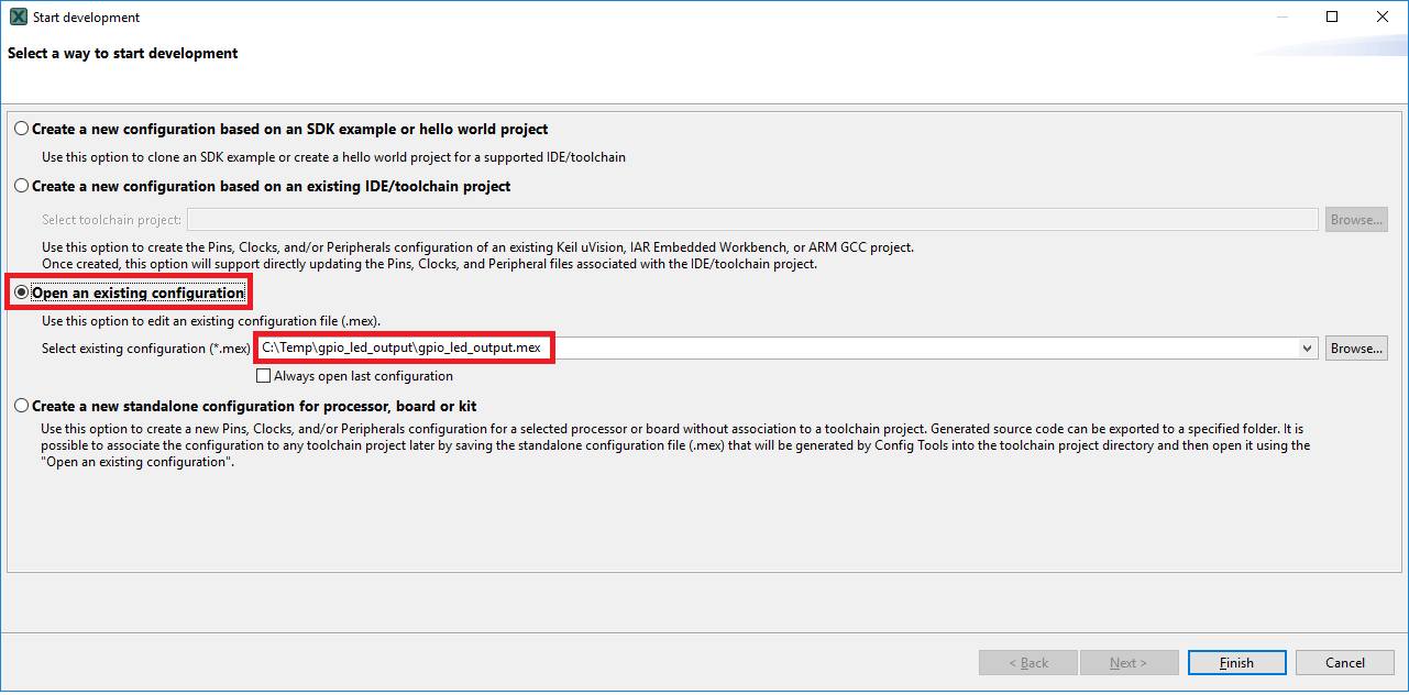 Option B: Use the MCUXpresso Config Tool to clone an existing MCUXpresso SDK example for use with third party IDEs.