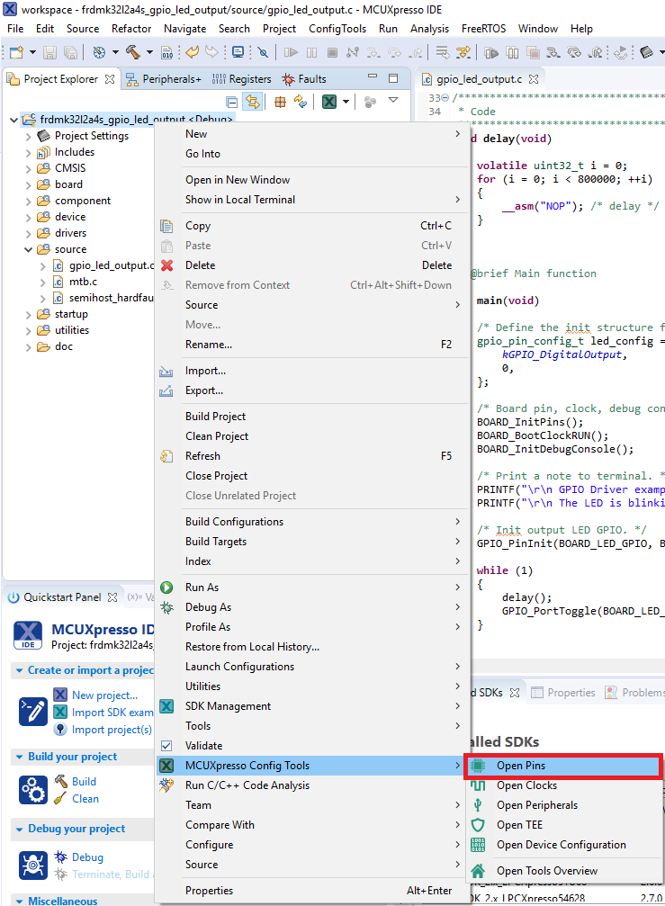 Use the guide below to learn how to open, build and debug an example application using the MCUXpresso IDE