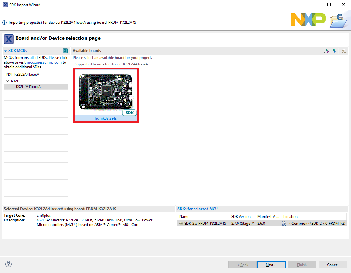 You can also use the online SDK Builder to create a custom SDK package for the FRDM-K32L2A4S.