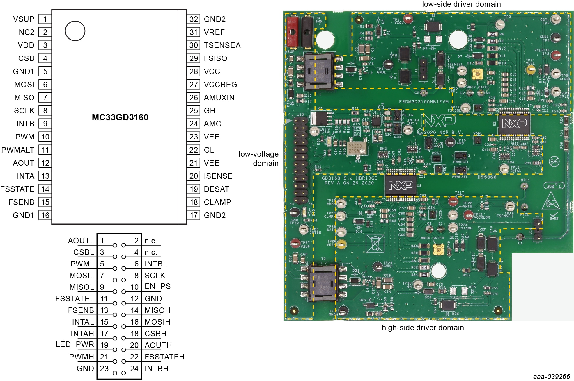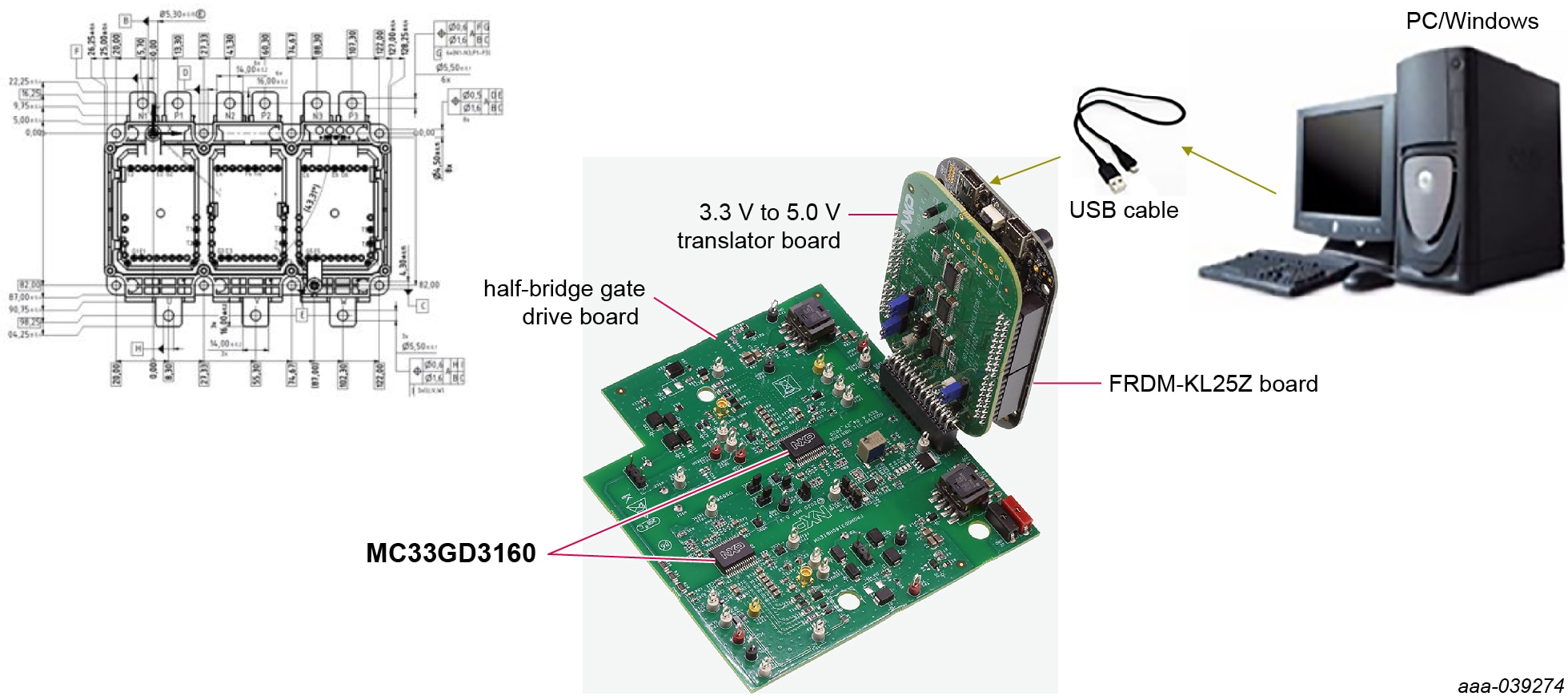 The evaluation board is designed to connect to a HybridPACK drive module for evaluation of the GD3160 performance and capabilities.