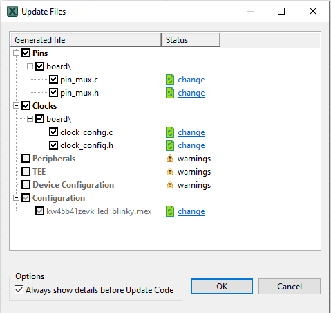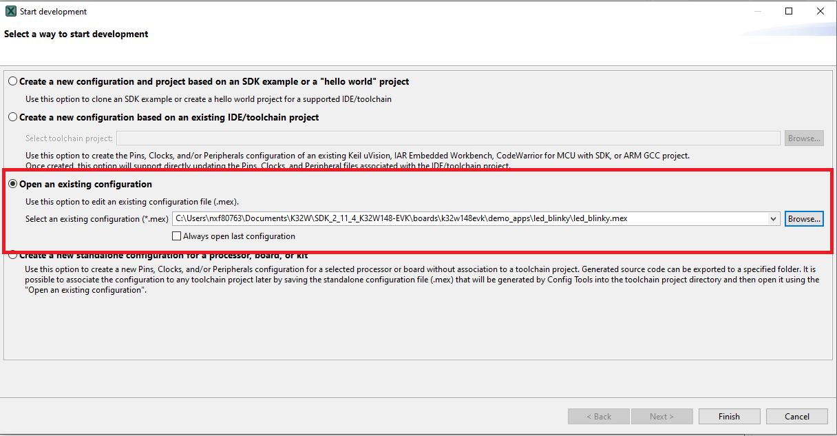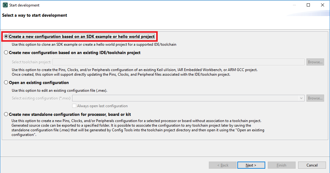 オプションB:MCUXpresso Config Toolsを使用して、サード・パーティ製IDEで使用するために既存のMCUXpresso SDKのサンプルのクローンを作成します。