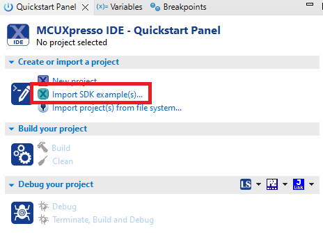 オプションA:MCUXpresso IDEを使用して、サンプル・プロジェクトをインポートします。