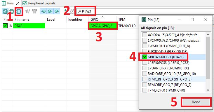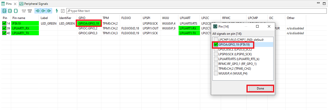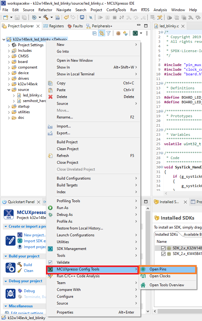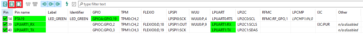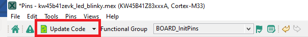 次に、MCUXpresso Config Toolsの一部であるピン・ツールを使用し、プロジェクトに新しいGPIOピンを追加してLEDを点滅させる方法を紹介します。