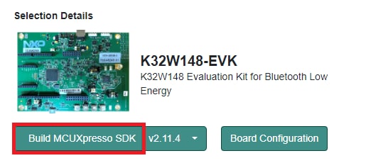 右側に、K32W148-EVK用にSDKをビルドするオプションが表示されます。そのボタンをクリックして、必要なミドルウェアを追加します。