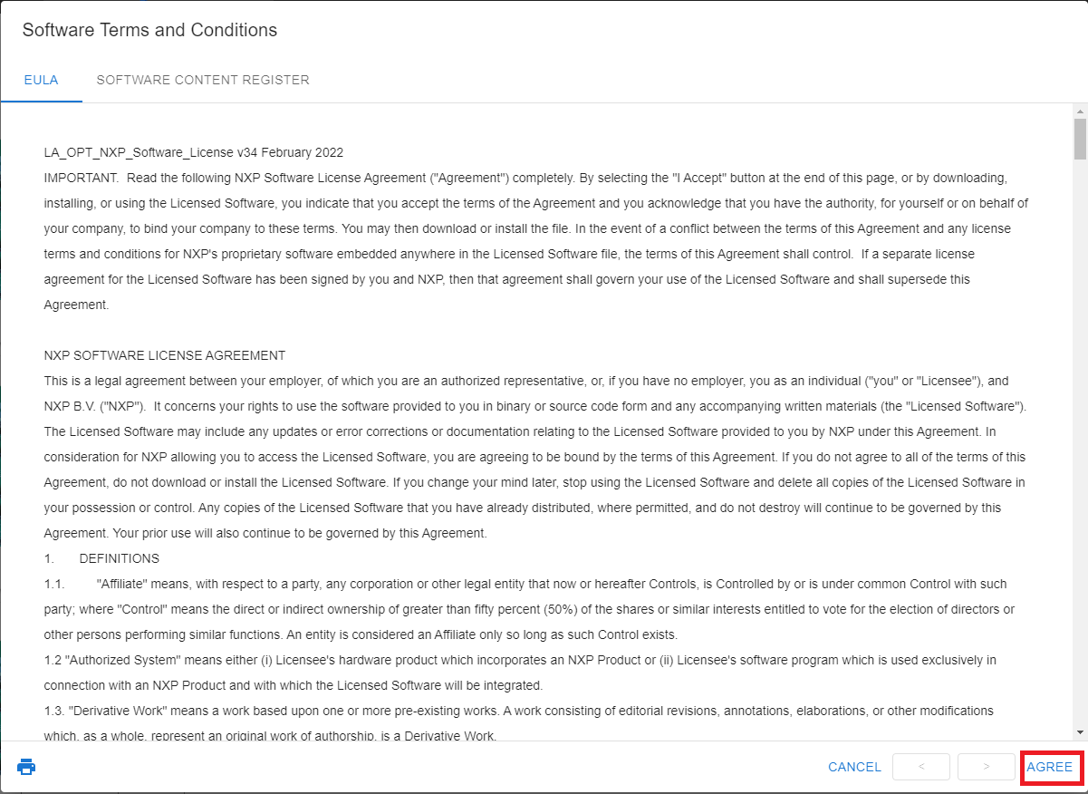 SDKをビルドするために、利用可能なミドルウェアについて[Select All(すべてを選択)]をクリックします。次に下にスクロールして[Download SDK(SDKをダウンロード)]をクリックします。「Software Terms and Conditions(ソフトウェアの利用規約)」が表示されたら、[I agree(同意する)]を選択してダウンロードを開始します。
