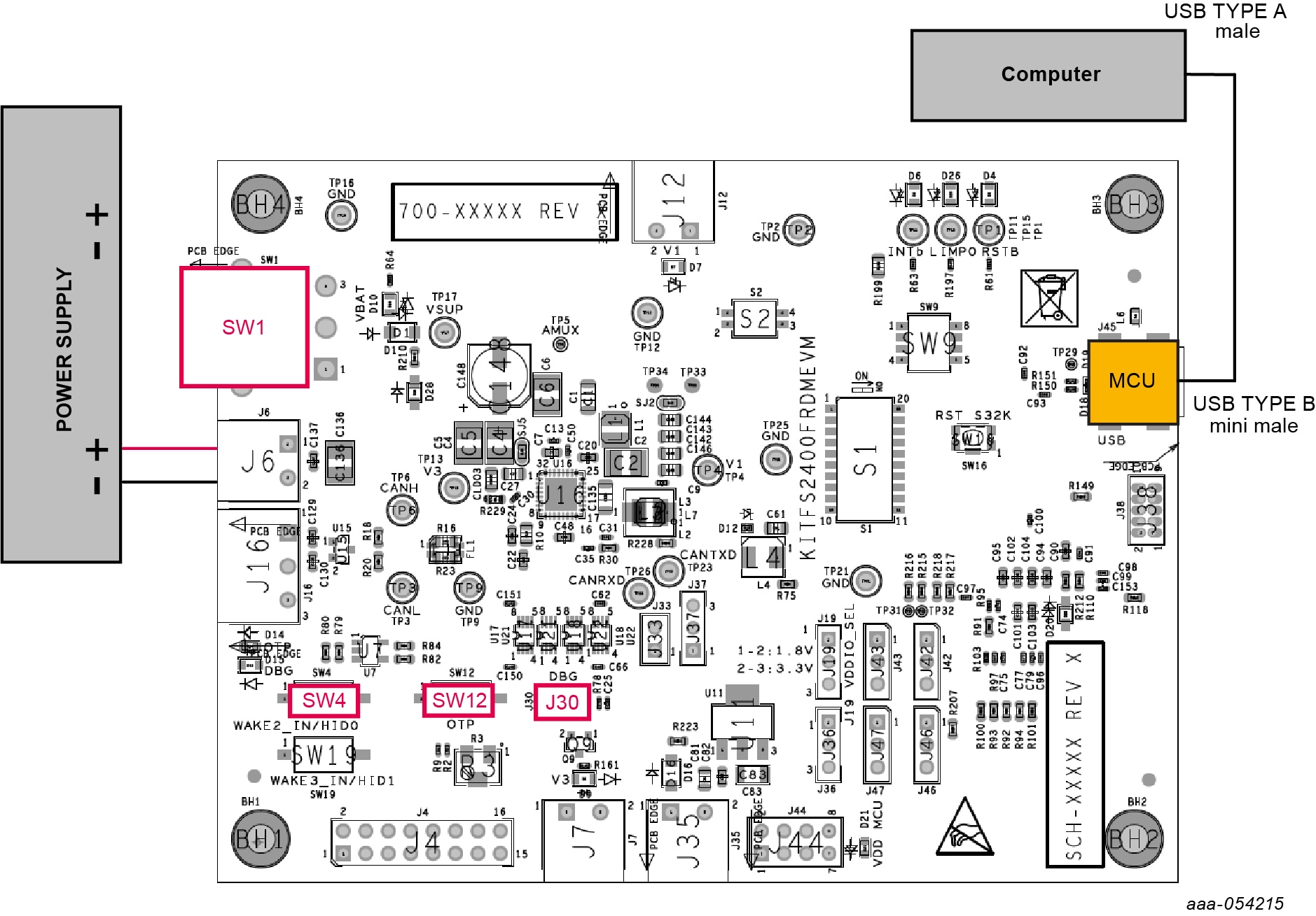 このページでは、KITFS2400FRDMEVMボードをセットアップして使用する手順について説明します。
