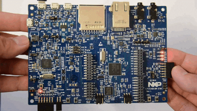 Your LPCXpresso54S018M board comes preloaded with a “Spirit Level” application and on-board diagnostic