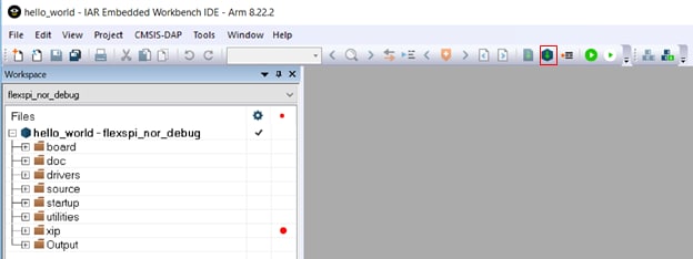 /boards/evkmimxrt1050/demo_apps/hello_world/iar/hello_world.eww ドロップダウン・リストから、目的のビルド・ターゲットを選択します。