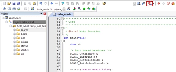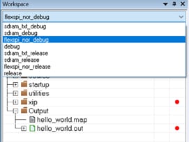 ここでは、「hello_world – flexspi_nor_debug」ターゲットを選択します。