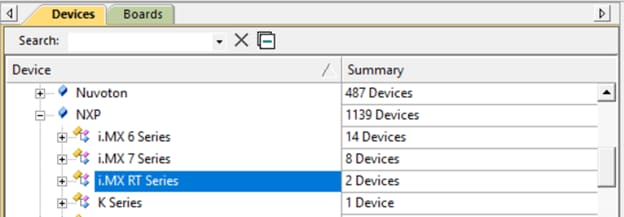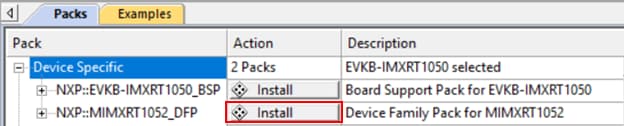 MDKツールをインストールした後、デバッグ目的でデバイスを完全にサポートするには、CMSIS (Cortex® Microcontroller Software Interface Standard) デバイス・パックをインストールする必要があります。このパックには、メモリ・マップ情報、レジスタ定義、フラッシュ・プログラミング・アルゴリズムなどが含まれています。下記の手順に従って、IMXRT105xのCMSISパックをインストールしてください。