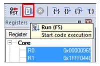 IARで[Download and Debug(ダウンロードとデバッグ)]ボタンをクリックし、アプリケーションをターゲットにダウンロードします。