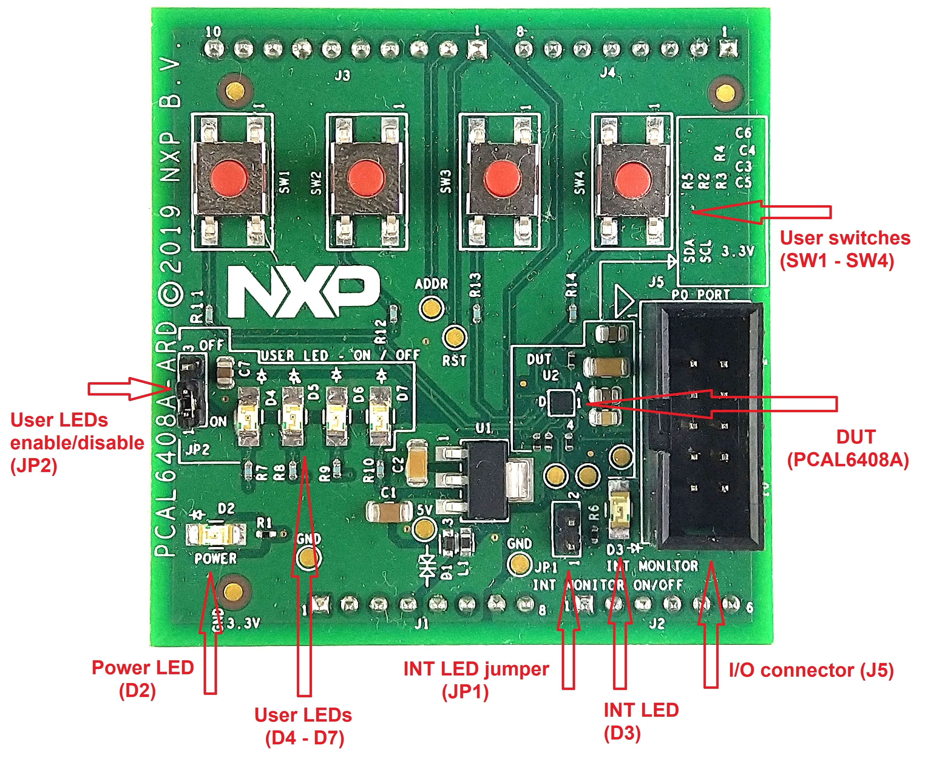 このページでは、PCAL6408A-ARDボードをセットアップして使用する手順について説明します。