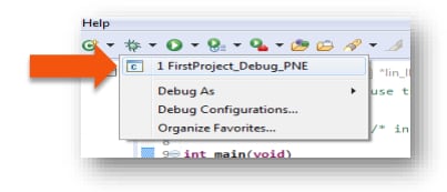 推奨:バグ・アイコンの下向き矢印をクリックし、_debug.elfターゲットを選択します