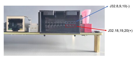 Supply the power with the ECU cable to the ECU connector J32 with no more than 28 V, typically 12 V. Below is the Vbat pins definition.